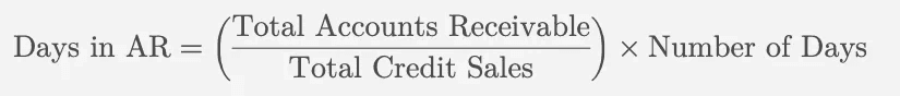 Days in AR measures the average number of days it takes to collect payments from patients and payers and can be calculated using the following formula: