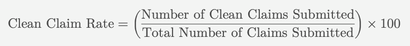 The clean claim rate represents the percentage of claims submitted without errors. Higher clean claim rates reduce the likelihood of denials and rework.
