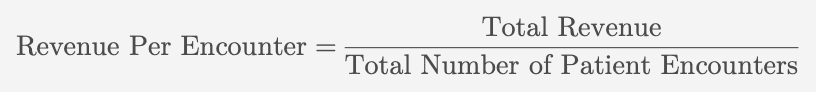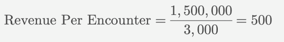 If a healthcare provider generates $1,500,000 in total revenue over a month and has 3,000 patient encounters during that period, their revenue per encounter would be calculated as: