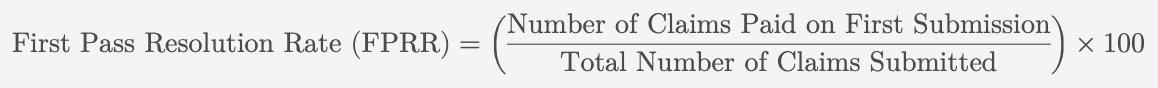 FPRR indicates the percentage of claims paid upon first submission without any need for rework, calculated below: